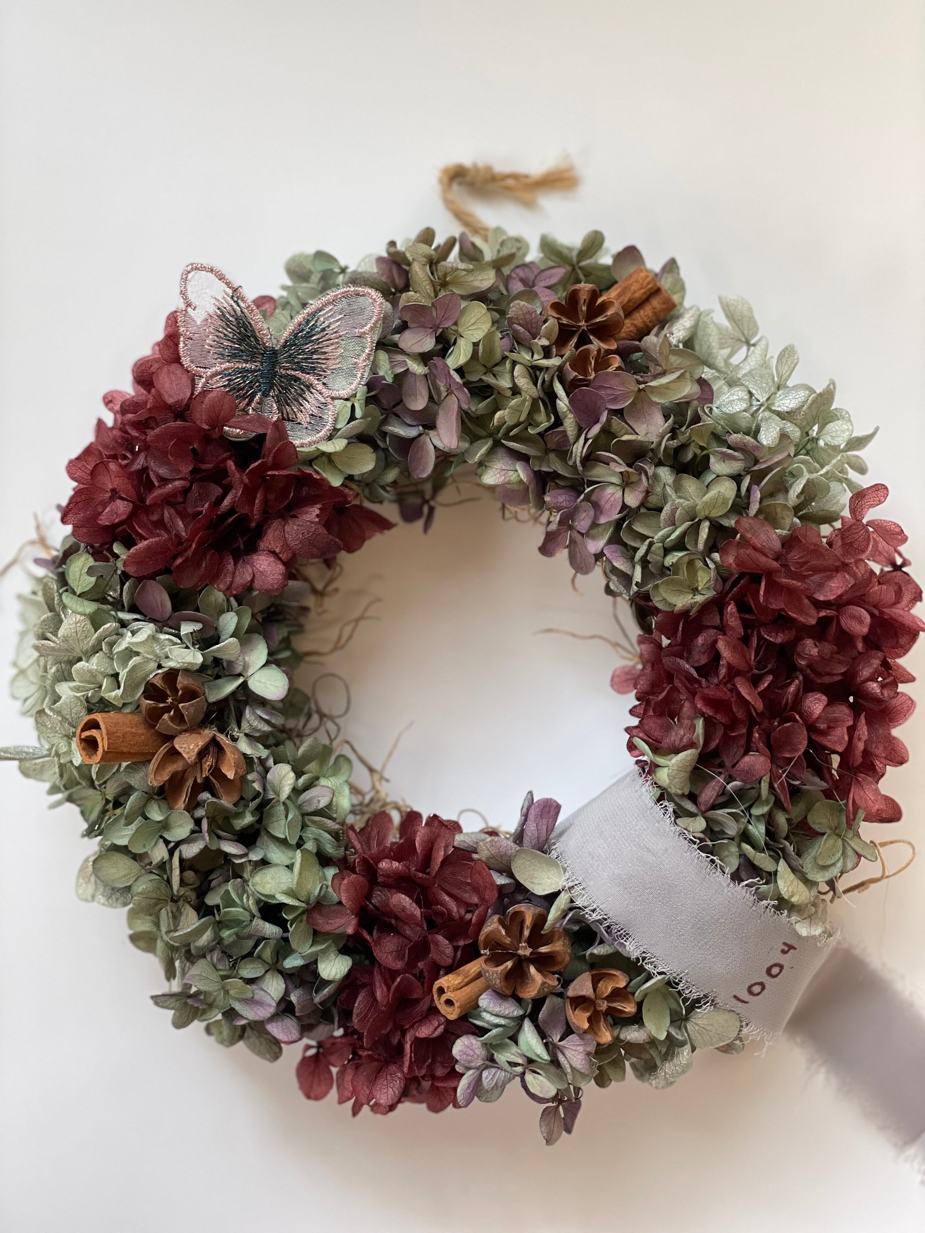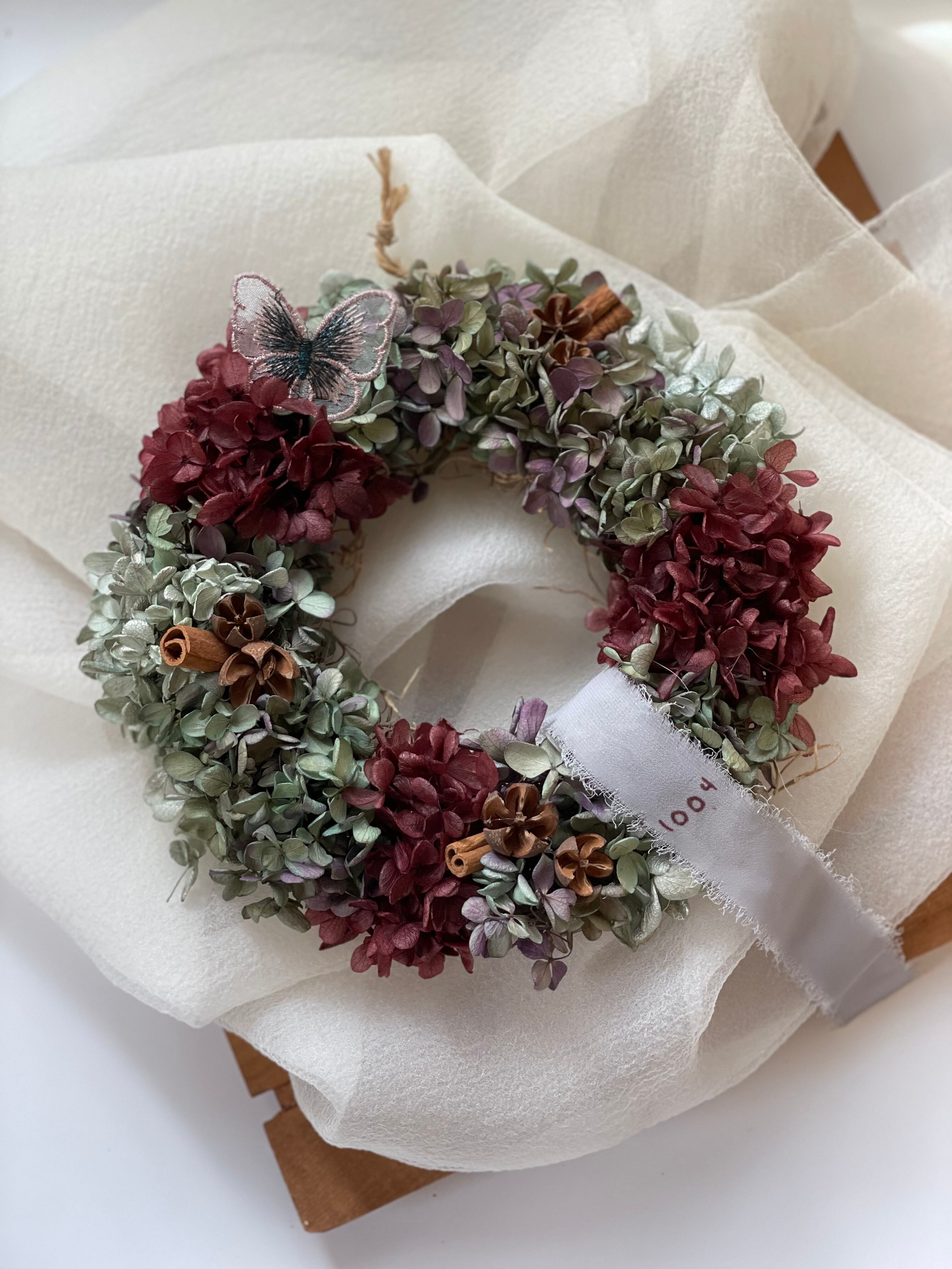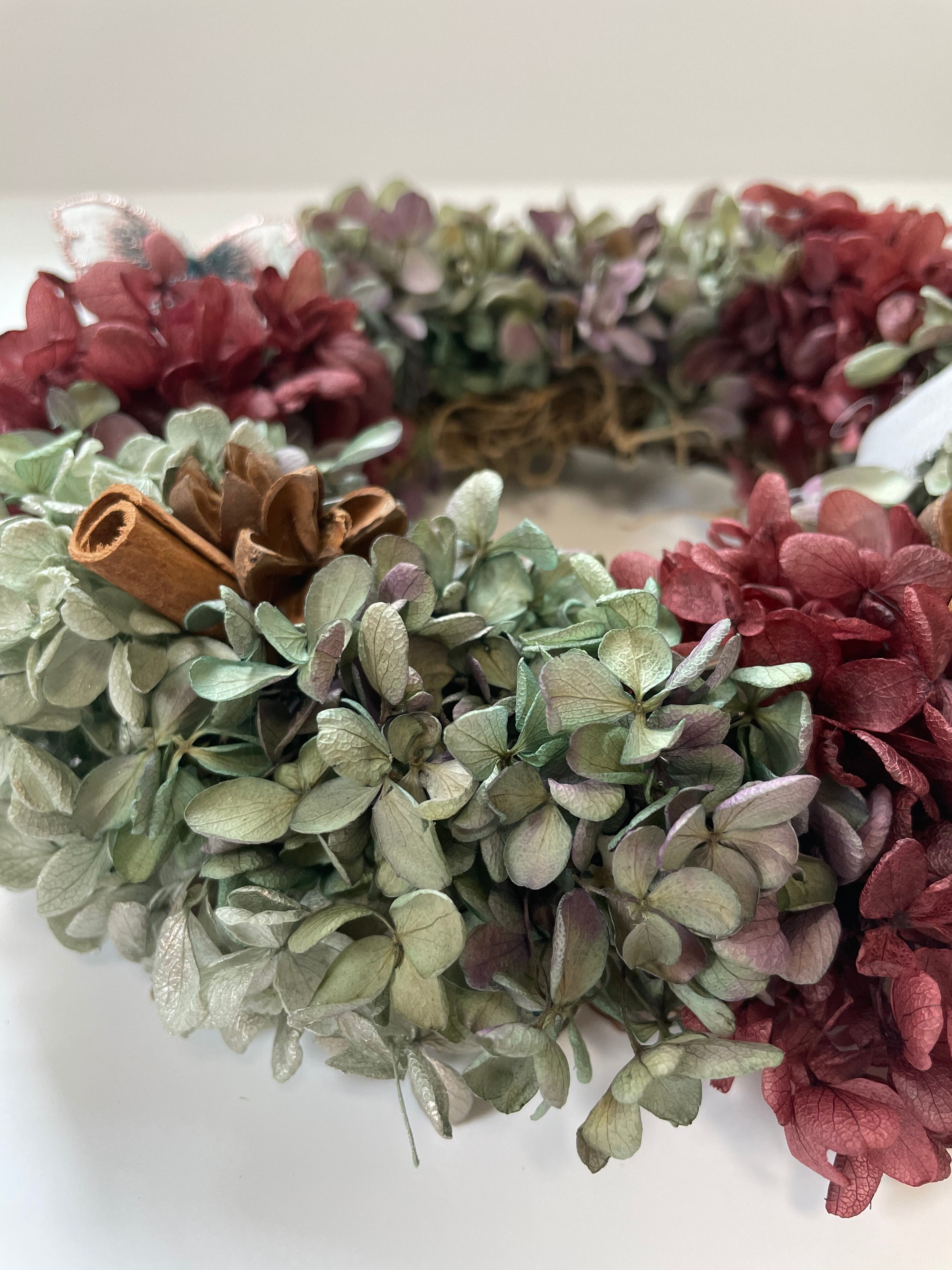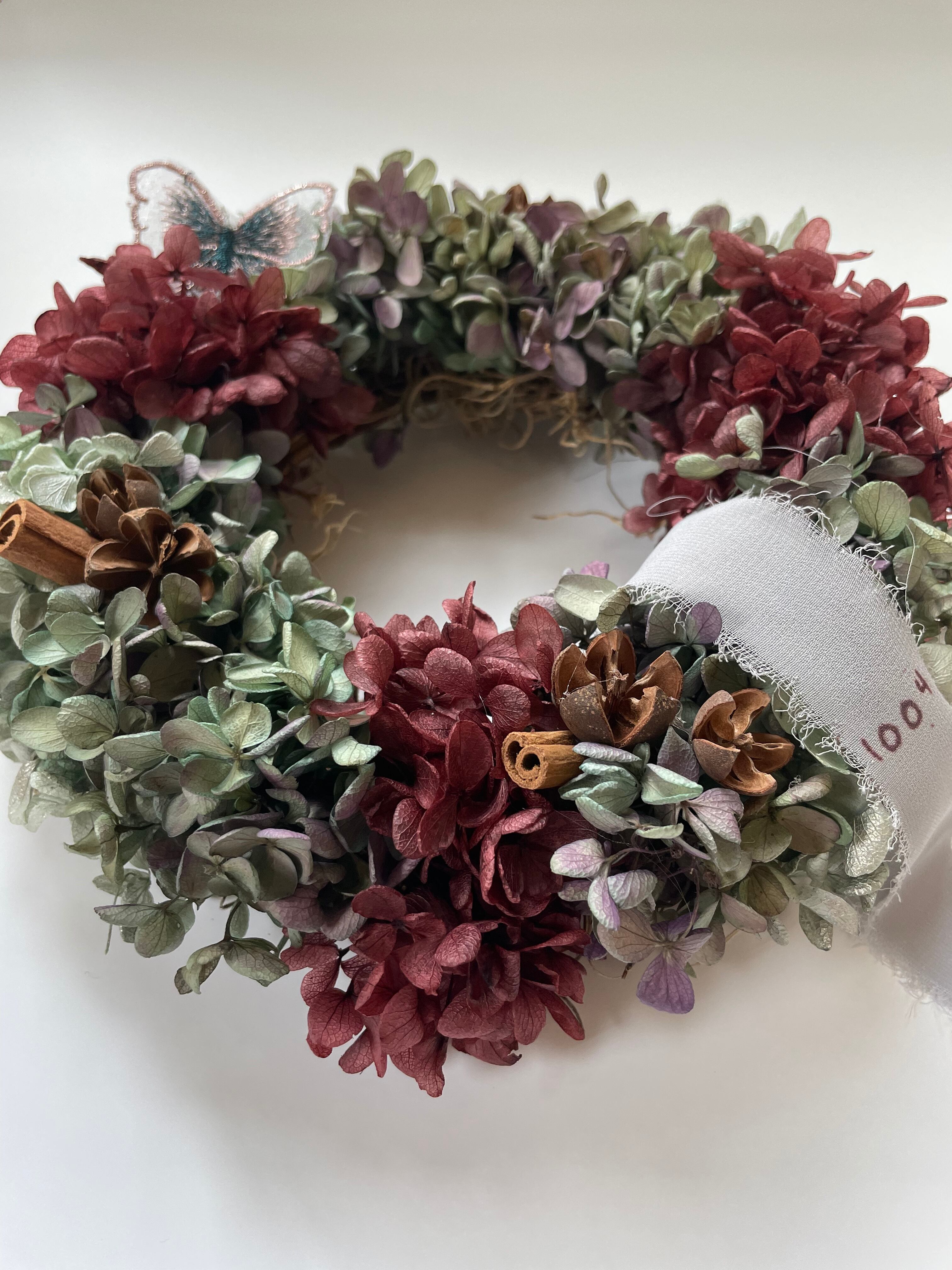 あじさいのプリザーブドフラワーを使ったちょっとシックな大人colorのリース