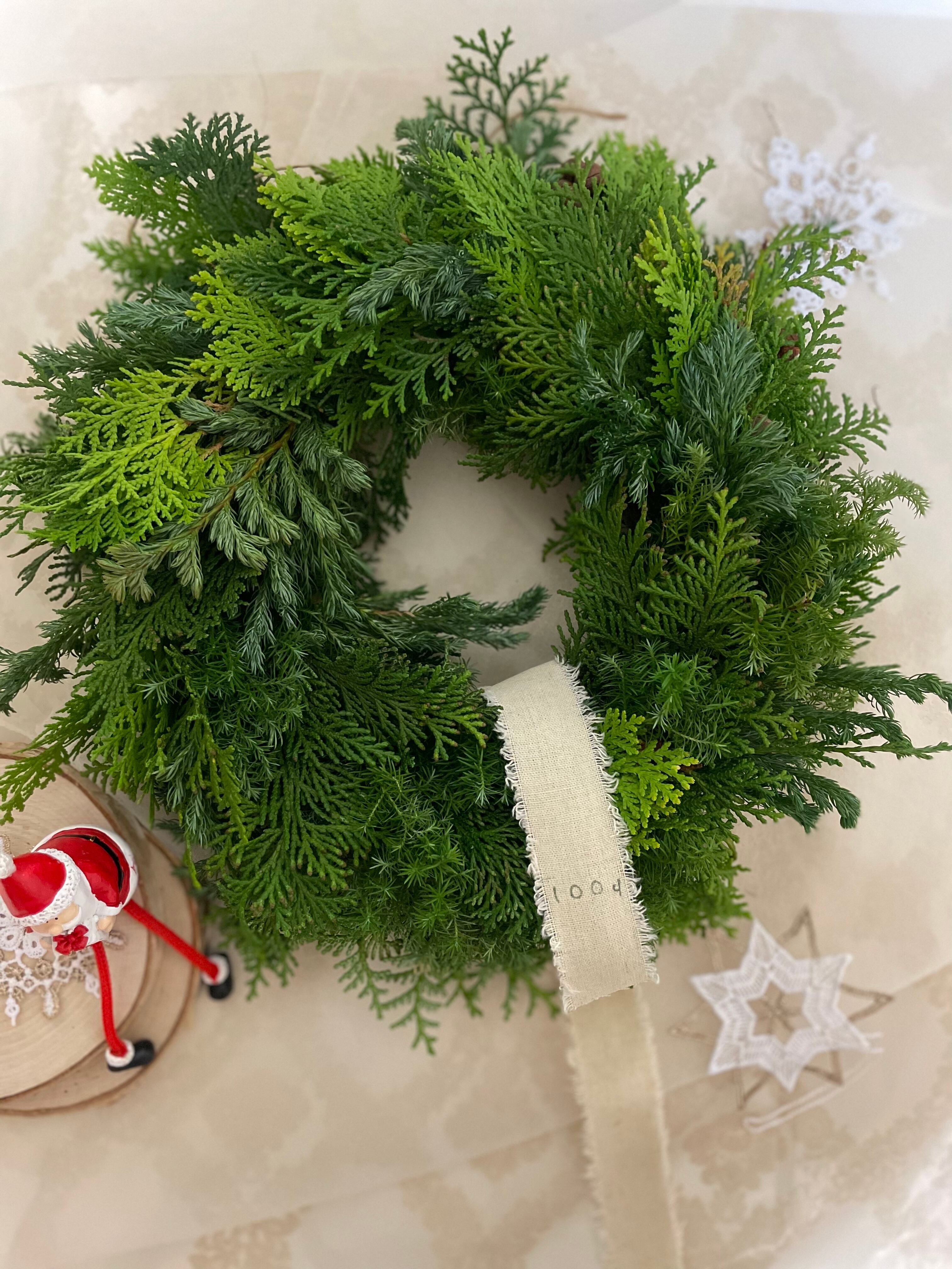 4〜5種類の針葉樹をたっぷりと使ったフレッシュグリーンのリースです!
