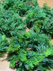 *リースはツルを巻いたベースに、グリーンをワイヤーで巻き付けて出来ています。