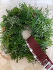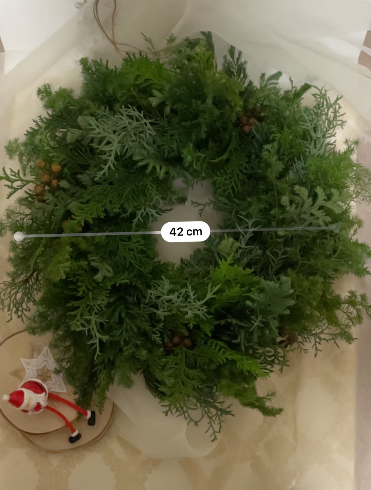 *リースはツルを巻いたベースに、グリーンをワイヤーで巻き付けて出来ています。