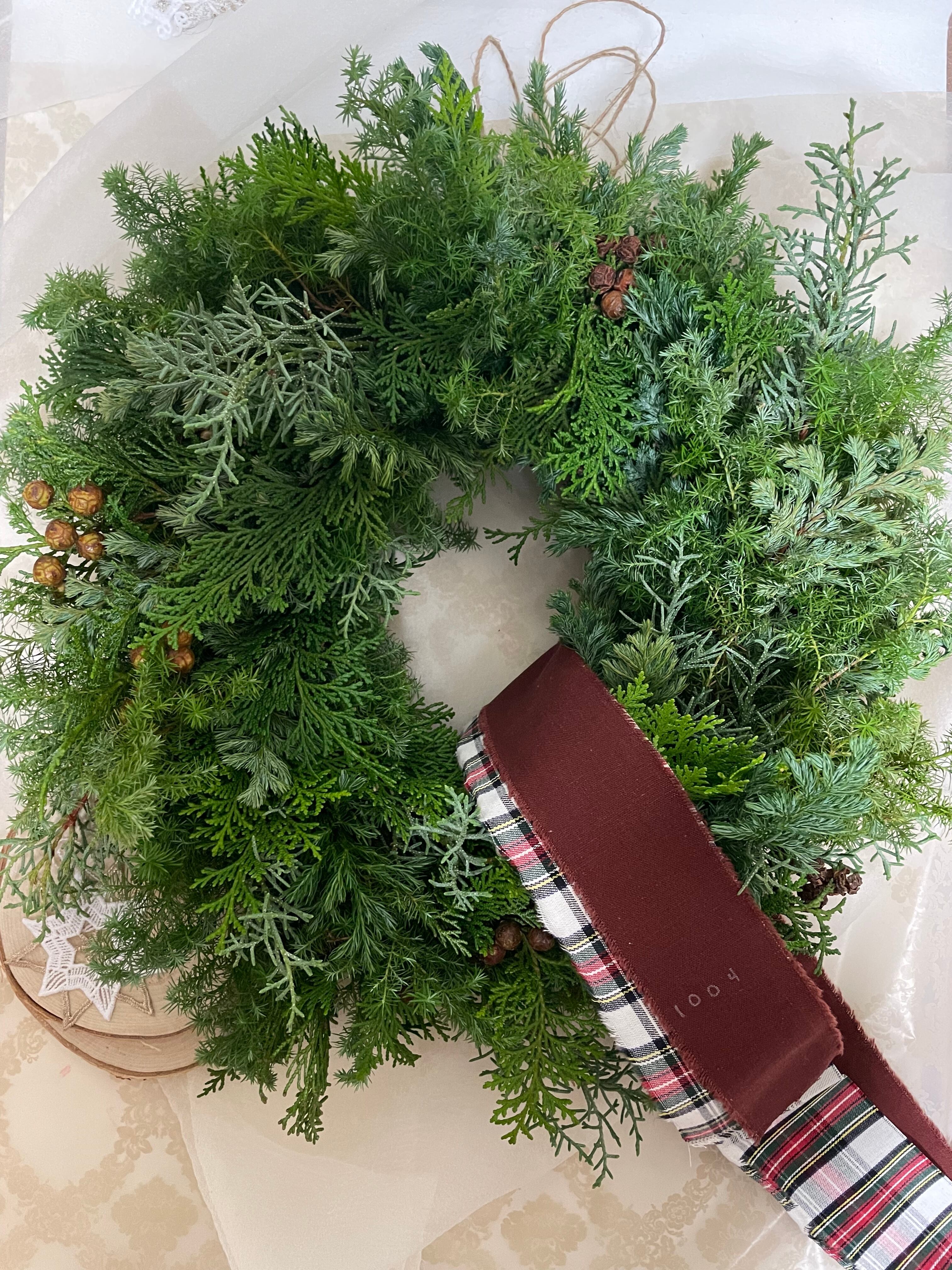 4〜5種類の針葉樹をたっぷりと使ったフレッシュグリーンのリースです!
