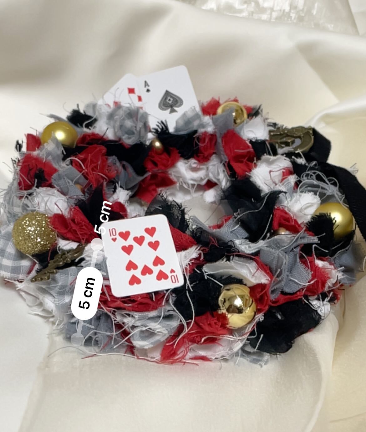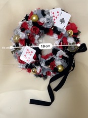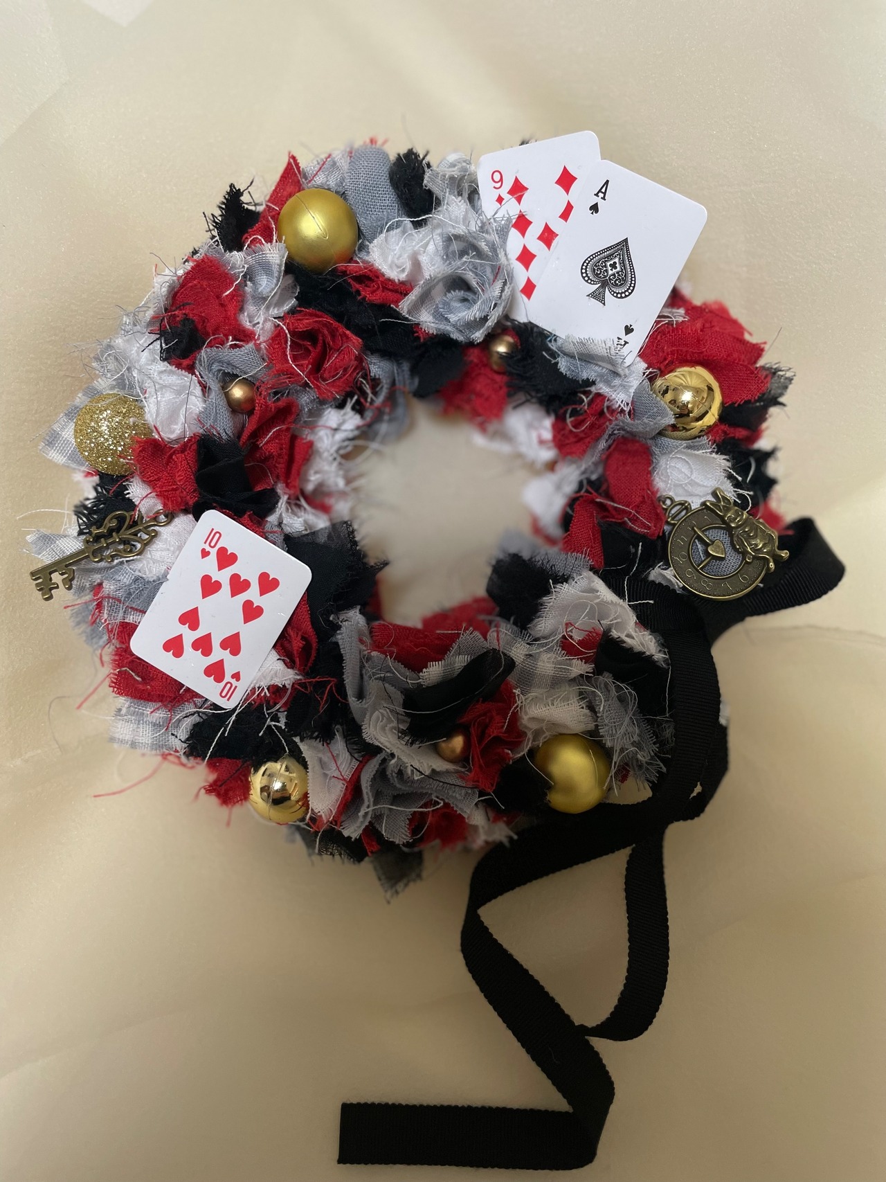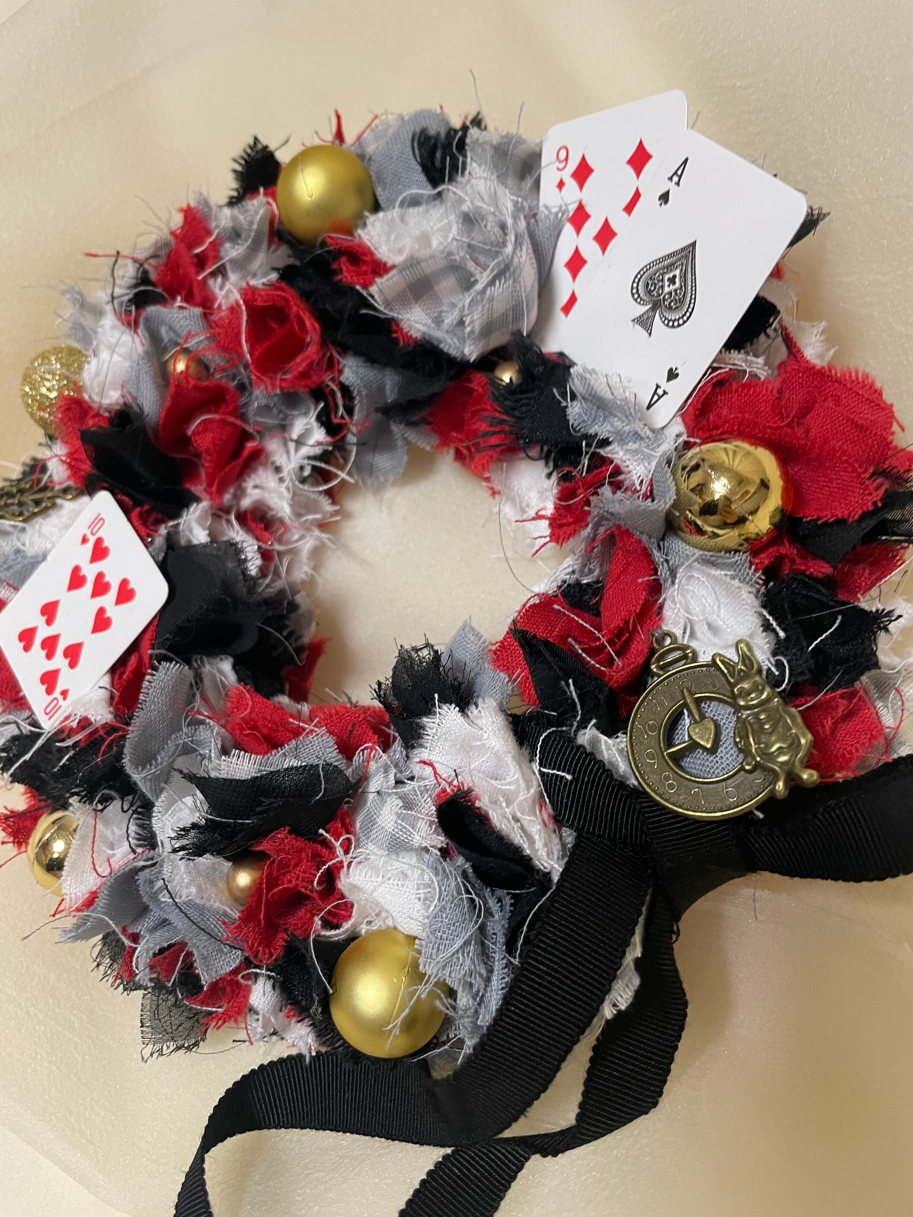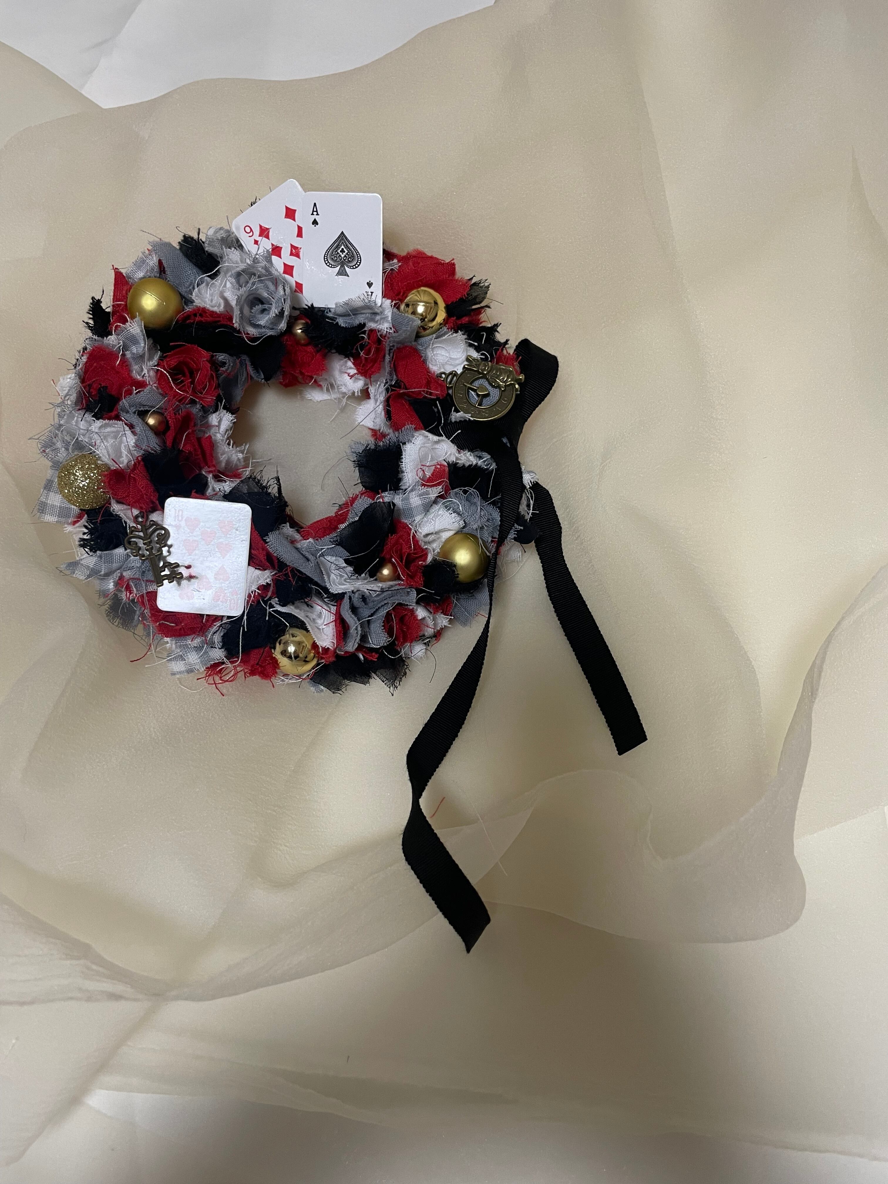 不思議の国のアリスをイメージしたリースです。毎日をワクワクさせる不思議な世界をあなたのお部屋にお届けします。色鮮やかな花々と可愛らしいキャラクターが織り成す世界に、まるで夢の中に迷い込んだような気分になります。リビングや玄関、お部屋のアクセントに最適です。丁寧に手作りされたこのリースは布を使ったものになるので長く飾っていただけること間違いなしです。心躍るような不思議な世界への扉を開いてみませんか?お部屋をまた一つ魔法のような空間に変えることができますよ。ぜひお試しください。